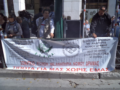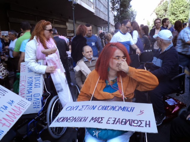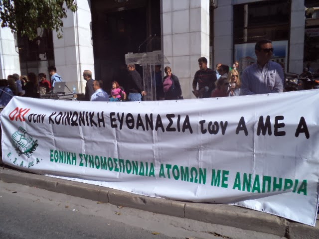 «Φτάνει πια! Την κρίση την πληρώνουν αυτοί που δεν φταίνε, οι πλέον ευάλωτοι, οι φτωχότεροι των φτωχών, τα άτομα με αναπηρία και οι οικογένειές τους» αναφέρεται σε σχετική ανακοίνωση της Εθνική Συνομοσπονδία Ατόμων με Αναπηρία.