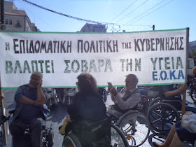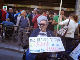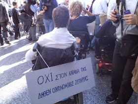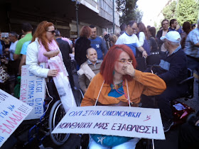 «Φτάνει πια! Την κρίση την πληρώνουν αυτοί που δεν φταίνε, οι πλέον ευάλωτοι, οι φτωχότεροι των φτωχών, τα άτομα με αναπηρία και οι οικογένειές τους» αναφέρεται σε σχετική ανακοίνωση της Εθνική Συνομοσπονδία Ατόμων με Αναπηρία.