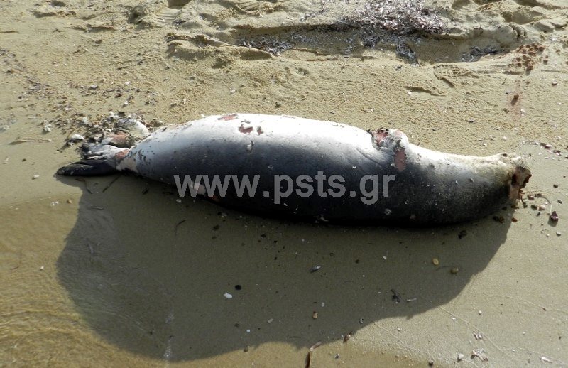Οι φωτογραφίες που δημοσιεύουμε είναι της Μαρίας - Γωγώ Ραγκούση που εντόπισε την νεκρή φώκια Monachus - Monachus χθες το μεσημέρι στην παραλία των Τσουκαλιών.