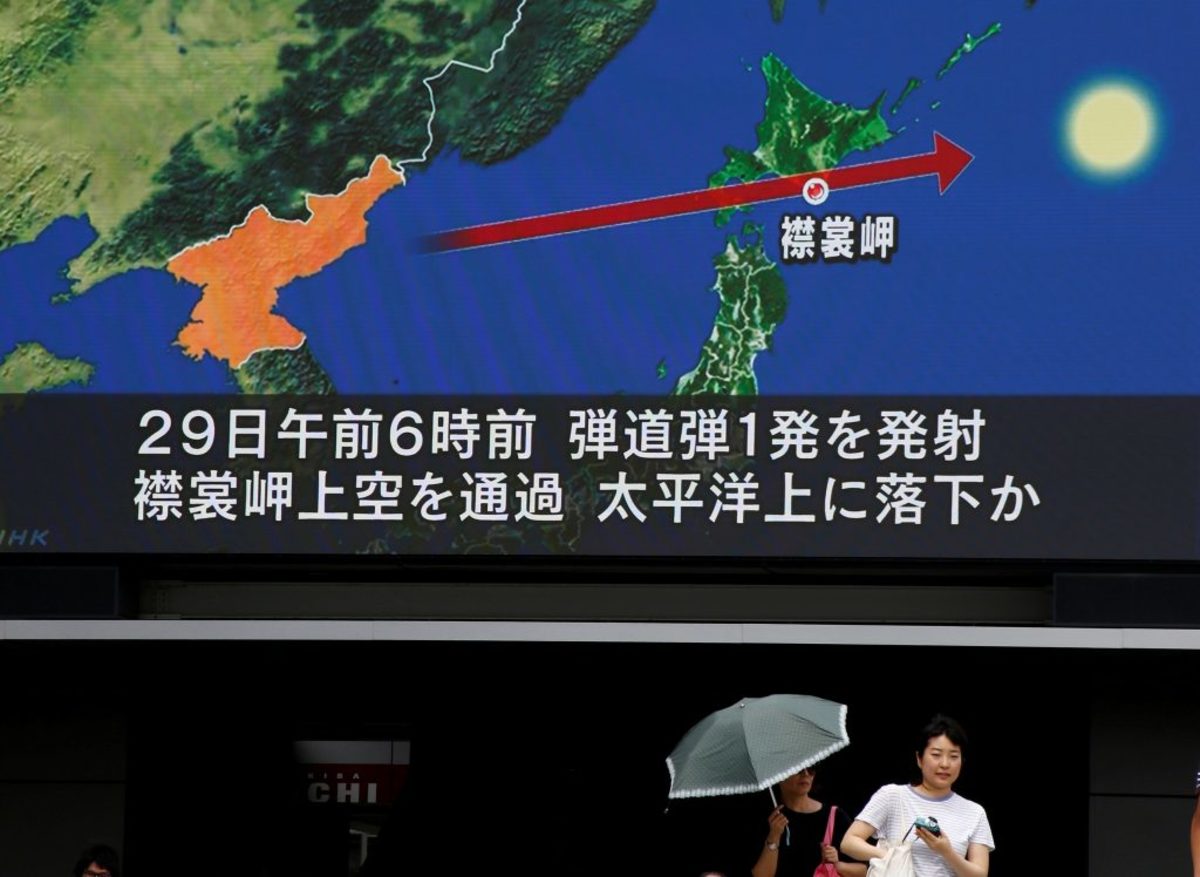 - Με νέα εκτόξευση πυραύλου απάντησε η Βόρεια Κορέα στο εμπάργκο του ΟΗΕ - Πέρασα πάνω από την Ιαπωνία ο πύραυλος - Ήταν διηπειρωτικός βαλλιστικός πύραυλος σύμφωνα με τη Νότια Κορέα - Πεντάγωνο: Ήταν μεσαίου βεληνεκούς, δεν απείλησε το Γκουάμ