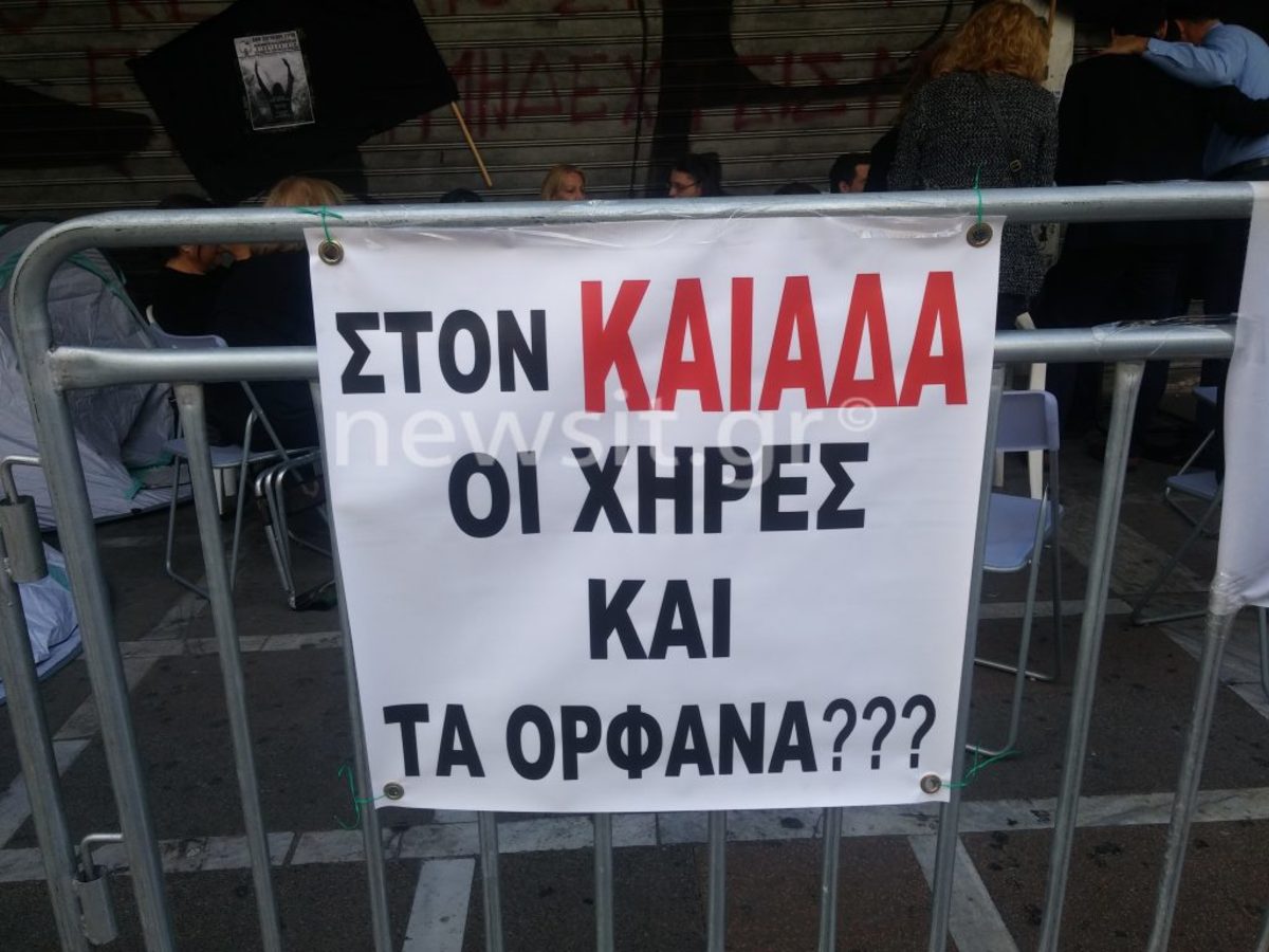 Οι χήρες έχουν «κατασκηνώσει» και παραμένουν έξω από το Υπουργείο Εργασίας μέρα και νύχτα, ζητώντας την άρση των ηλικιακών κριτηρίων για τη χορήγηση Σύνταξης Χηρείας που έχει ορίζει ο νόμος Κατρούγκαλου.