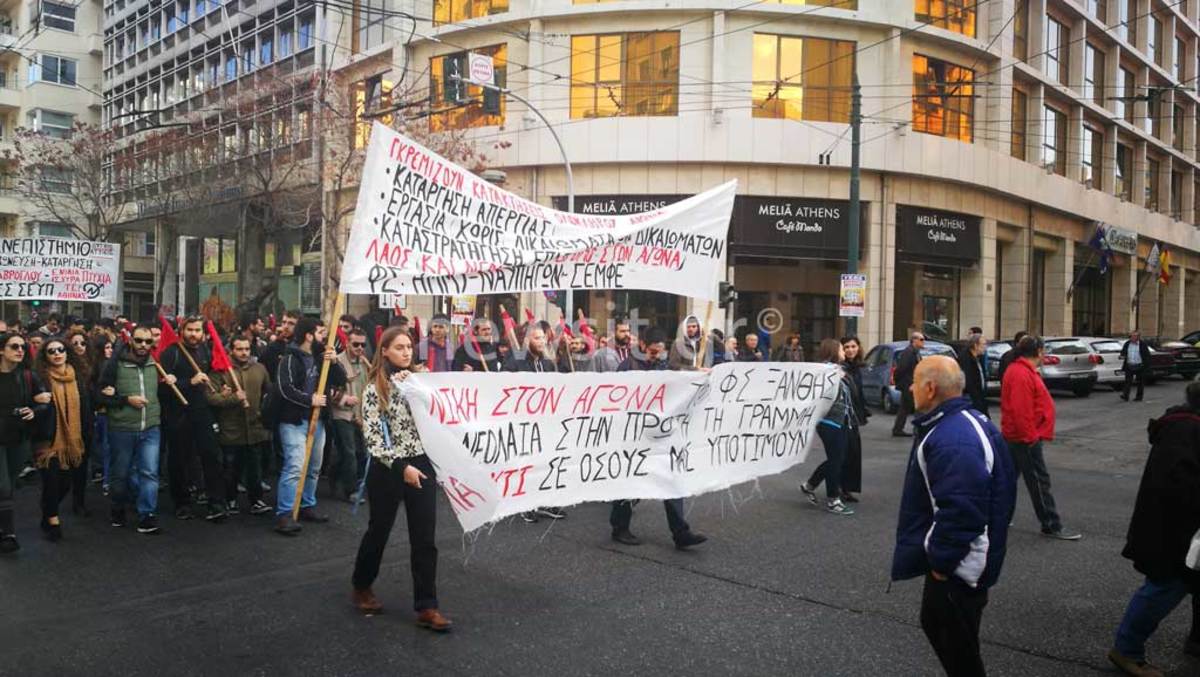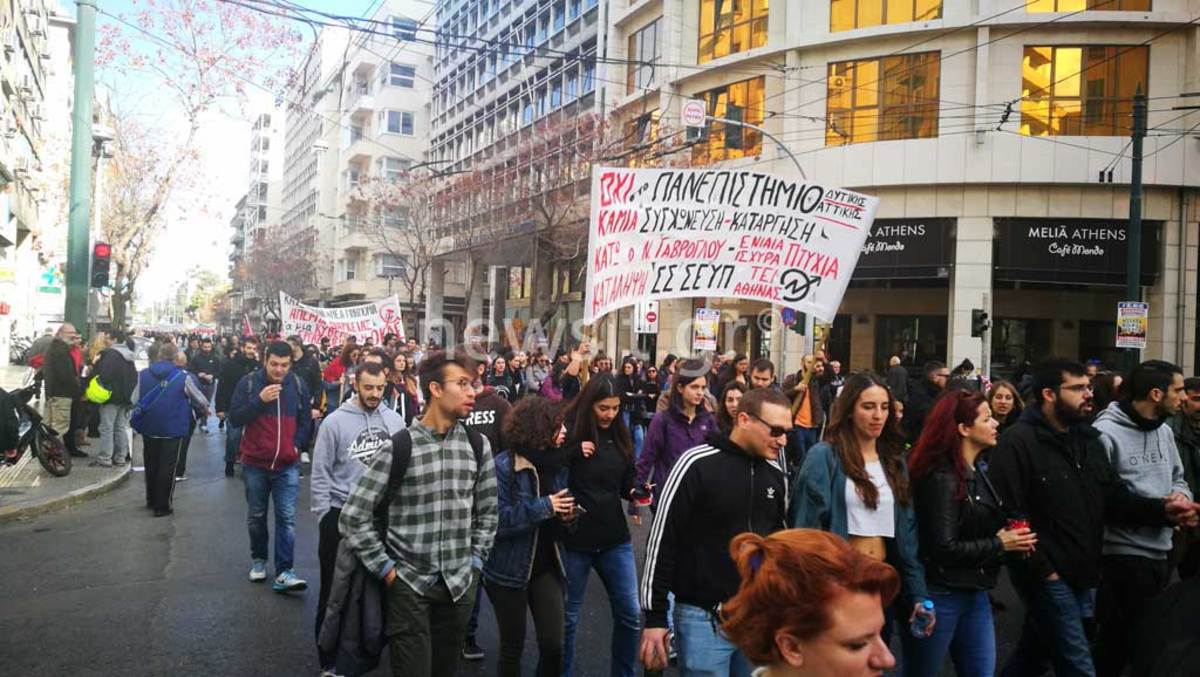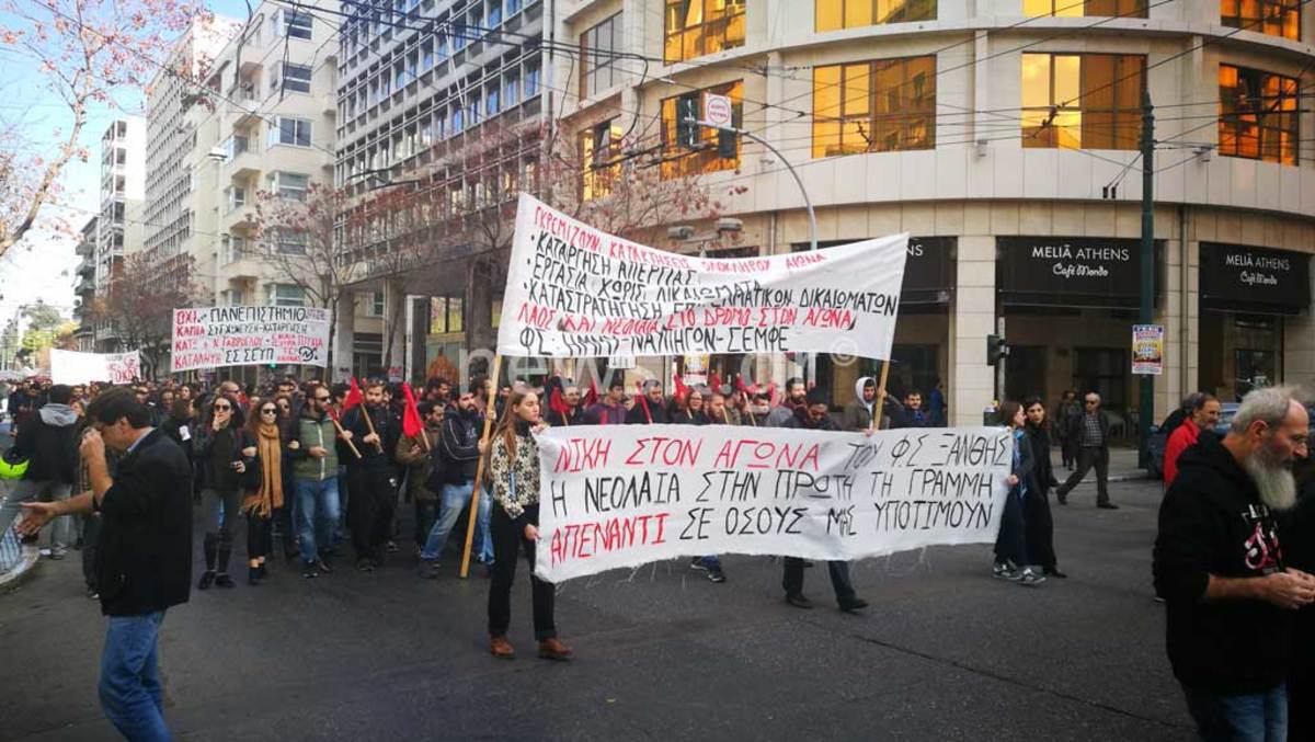 Κλειστή η Σταδίου από την πορεία αριστερές οργανώσεις και φοιτητικούς συλλόγους.
