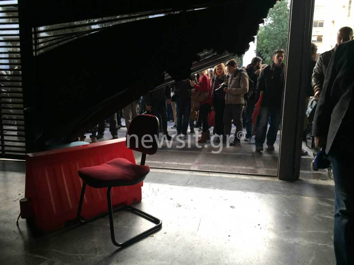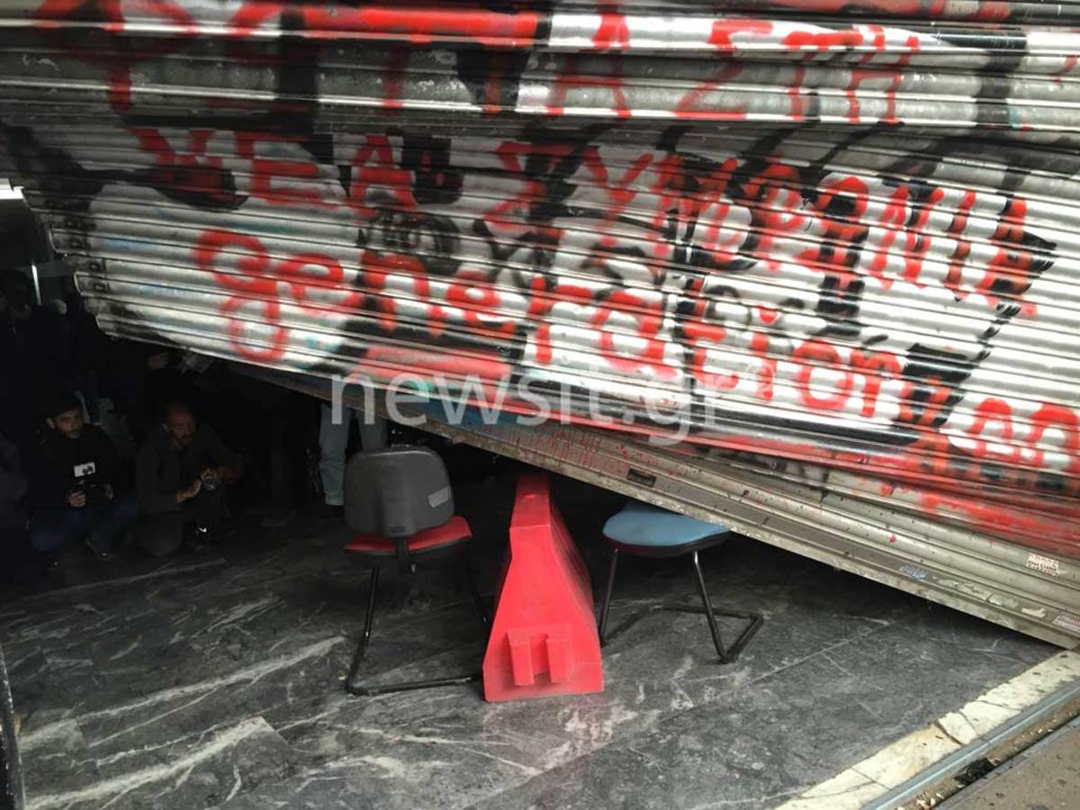 Ακολούθησαν σκηνές που μάλλον δεν έχουμε ξαναδεί! Οι άνδρες της ΥΜΕΤ που βρισκόταν εντός του κτηρίου προφανώς αιφνιδιασμένοι από το γεγονός ότι τα μέλη του ΠΑΜΕ “ξήλωσαν” με ευκολία τα ρολά δεν πρόλαβαν να αντιδράσουν.