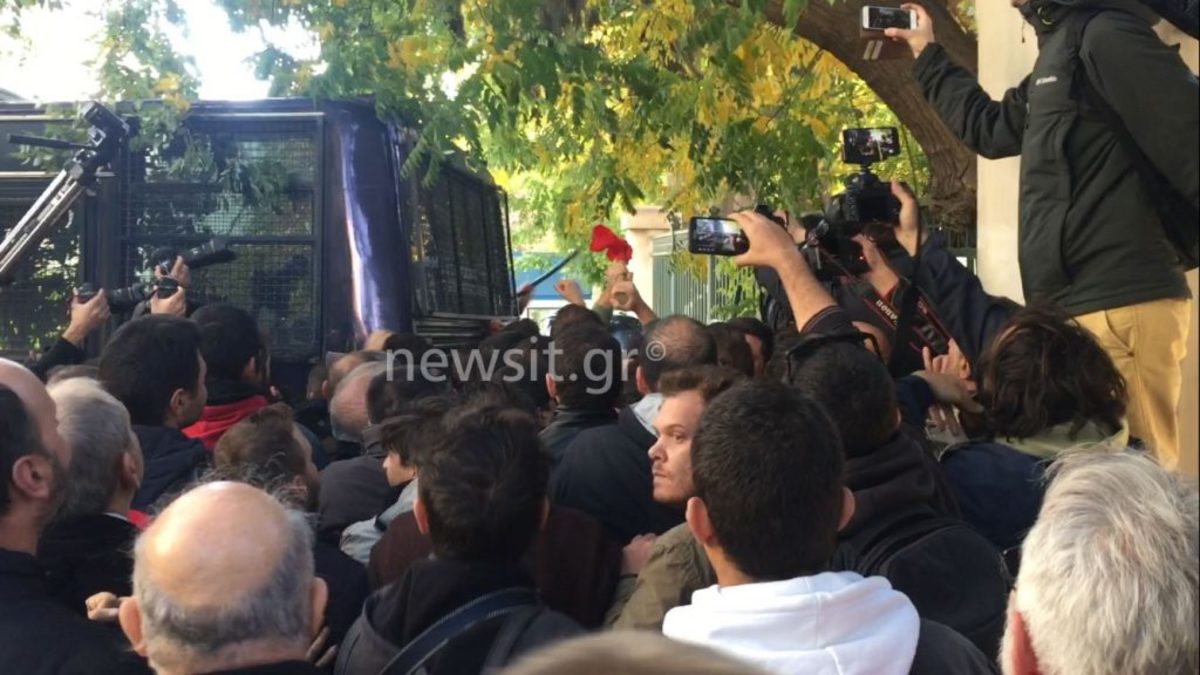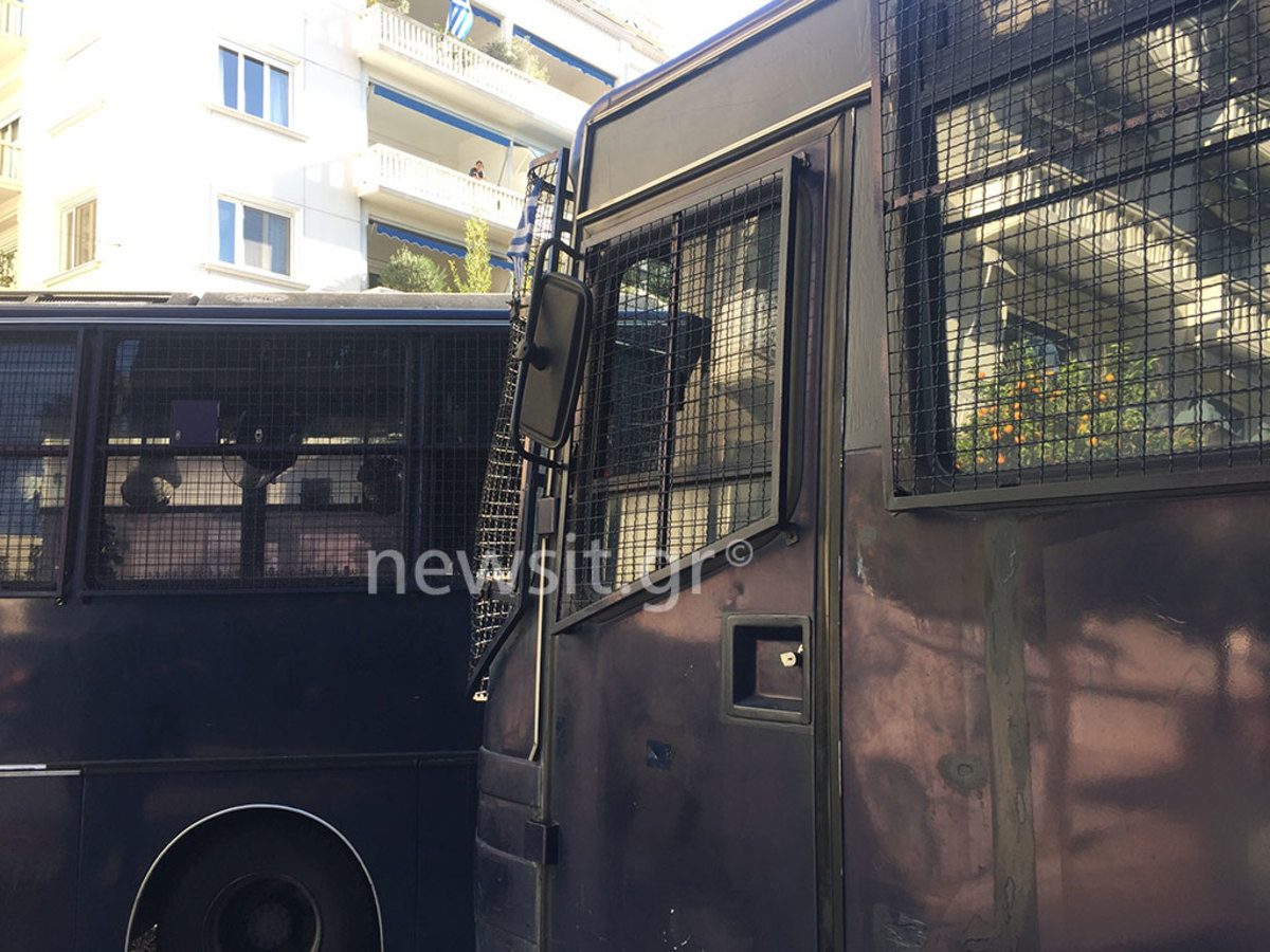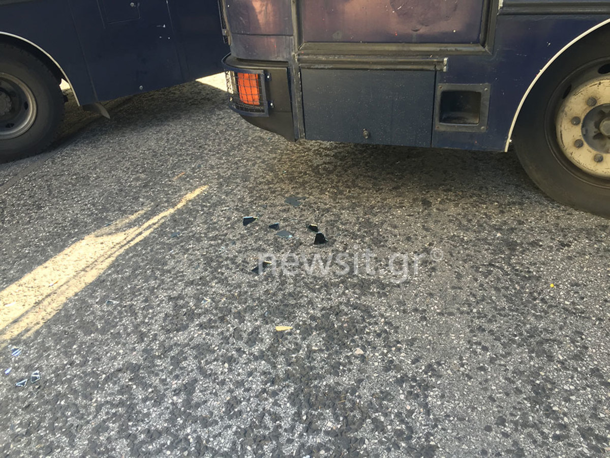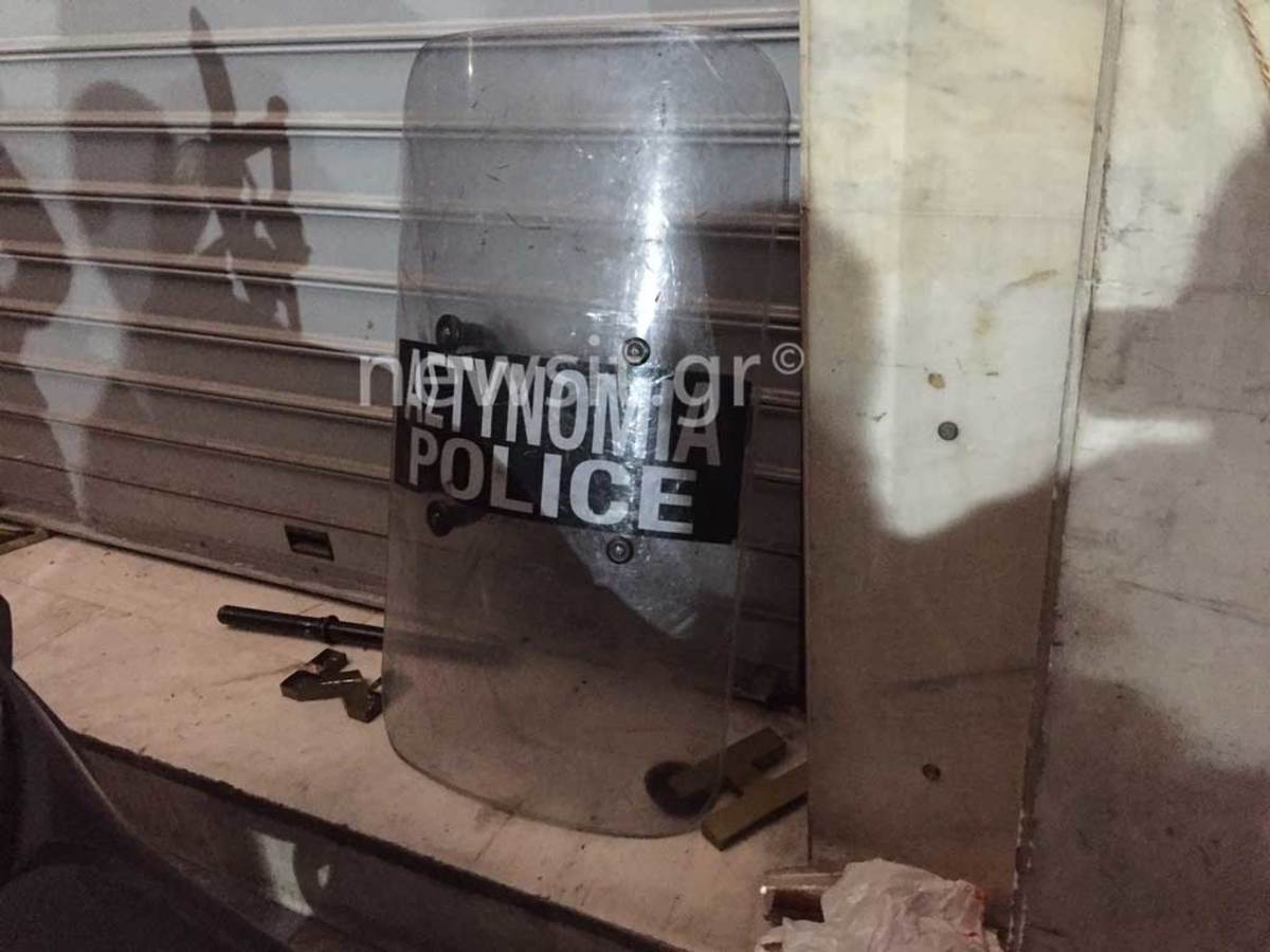 Κάποιοι από αυτούς άφησαν στο σημείο ως και μια ασπίδα με ένα “γκλοπ” πριν ακολουθήσουν τους συναδέλφους στην άλλη έξοδο του κτηρίου όπου αναζήτησαν ασφαλές σημείο…
