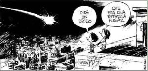 Το σκίτσο των Miki & Duarte, που πρωτοδημοσιεύτηκε στις 26 Ιούλη 2014, εξακολουθεί και είναι επίκαιρο με έναν τραγικό τρόπο. Κάπου στη Γάζα ο μικρός Παλαιστίνιος προτρέπει την αδελφή του:«Pide un deseo» (Κάνε μια ευχή) και εκείνη εύχεται: «Que sea una estrella fugaz» (Να είναι αυτό ένα πεφταστέρι…)