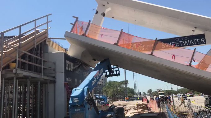 Μια πεζογέφυρα κατέρρευσε σήμερα στην κομητεία Μαϊάμι-Ντέιντ της Φλόριντας, σε έναν αυτοκινητόδρομο με έξι λωρίδες κυκλοφορίας, με αποτέλεσμα να παγιδευτούν στα συντρίμμια πολλά οχήματα που περνούσαν από κάτω.