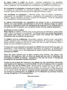 Παράλληλα απηύθυναν κάλεσμα συμπαράστασης και στήριξης της απεργίας και της συγκέντρωσης που πραγματοποιούν στις 11 το πρωί του Σαββάτου 17 Οκτώβρη στο εργοστάσιο της ΛΑΡΚΟ, στη Λάρυμνα.