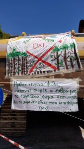 Αστυνομικές δυνάμεις είχαν βρεθεί και χτες το βράδυ στον χώρο, όπου υπήρχαν κάτοικοι σε βάρδια περιφρούρησης στο μπλόκο, απειλώντας τους με πρόστιμα βάσει της απαγόρευσης μετακίνησης που ισχύει στο πλαίσιο των μέτρων για την αντιμετώπιση της πανδημίας.