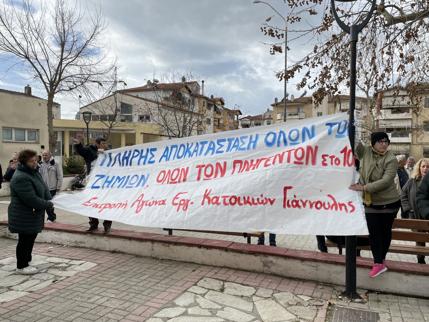 Καμία πρόοδο στα προβλήματα που αντιμετωπίζουν δεν βλέπουν οι πλημμυροπαθείς των Εργατικών Κατοικιών Γιάννουλης, που το πρωί της Κυριακής συγκεντρώθηκαν στην πλατεία των παλιών Εργατικών Κατοικιών και συζήτησαν για τα συμπεράσματα των συζητήσεων, αλλά και τις επόμενες ενέργειες του. Ο επικεφαλής της Λαϊκής Συσπείρωσης Θεσσαλίας, Τάσος Τσιαπλές, σημείωσε πως η κυβέρνηση συνεχίζει να δείχνει μια αδιαφορία προς τους κατοίκους, εξηγώντας πως πέρα από τις αρχικές αποζημιώσεις, δόθηκαν μόνο κάποια χρήματα για τους κατοίκους των ισογείων. Παράλληλα, ενημέρωσε για τις συναντήσεις που είχαν με τον περιφερειάρχη Θεσσαλίας, Δημήτρη Κουρέτα αλλά και με τον δήμαρχο Λαρισαίων, Θανάση Μαμάκο. Οι ίδιοι δήλωσαν πως στα περισσότερα ζητήματα που έθεσαν δεν πήραν ουσιαστικές απαντήσεις και λύσεις στα προβλήματά τους. Από αυτά τα πιο σημαντικά ζητήματα που έθεσαν είναι το θέμα στατικότητας των Εργατικών Κατοικιών, η κατάσταση των θυροφραγμάτων, αλλά και οι συνθήκες καθαριότητας της περιοχής. Από την πλευρά τους οι κάτοικοι που προσπαθούν να επιστρέψουν στην καθημερινότητα τους, σημειώνουν ότι οι αποζημιώσεις δεν έχουν δοθεί σε όλους ενώ οι δεσμεύσεις της Πολιτείας έχουν μείνει μόνο υποσχέσεις. Ακολούθησε πορεία στους δρόμους των Εργατικών Κατοικιών και στη συνέχεια έκλεισαν συμβολικά τον δρόμο Λάρισας Κοζάνης.