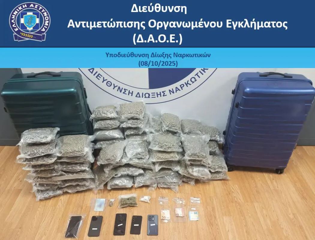 Από την Υποδιεύθυνση Δίωξης Ναρκωτικών της Διεύθυνσης Αντιμετώπισης Οργανωμένου Εγκλήματος, συνελήφθησαν απογευματινές ώρες της Τρίτης 7 Οκτωβρίου 2025, 4 άτομα (-3- ημεδαποί ηλικίας 27, 35 και 21 ετών και 19χρονος αλλοδαπός), μέλη διεθνικής εγκληματικής ομάδας, που δραστηριοποιούνταν στην εισαγωγή ακατέργαστης κάνναβης υδροπονικής καλλιέργειας (skunk) στην ελληνική επικράτεια.
