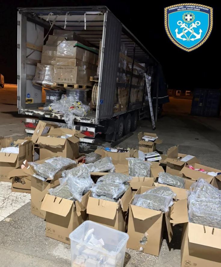 Κατά τον έλεγχο φορτηγού οχήματος στην ανατολική προβλήτα Ρίου Αχαΐας, το οποίο είχε αποβιβαστεί από επιβατηγό-οχηματαγωγό πλοίο της γραμμής Αντιρρίου-Ρίου, εντοπίστηκαν επιμελώς κρυμμένες στο φορτίο μεγάλες ποσότητες ναρκωτικών.